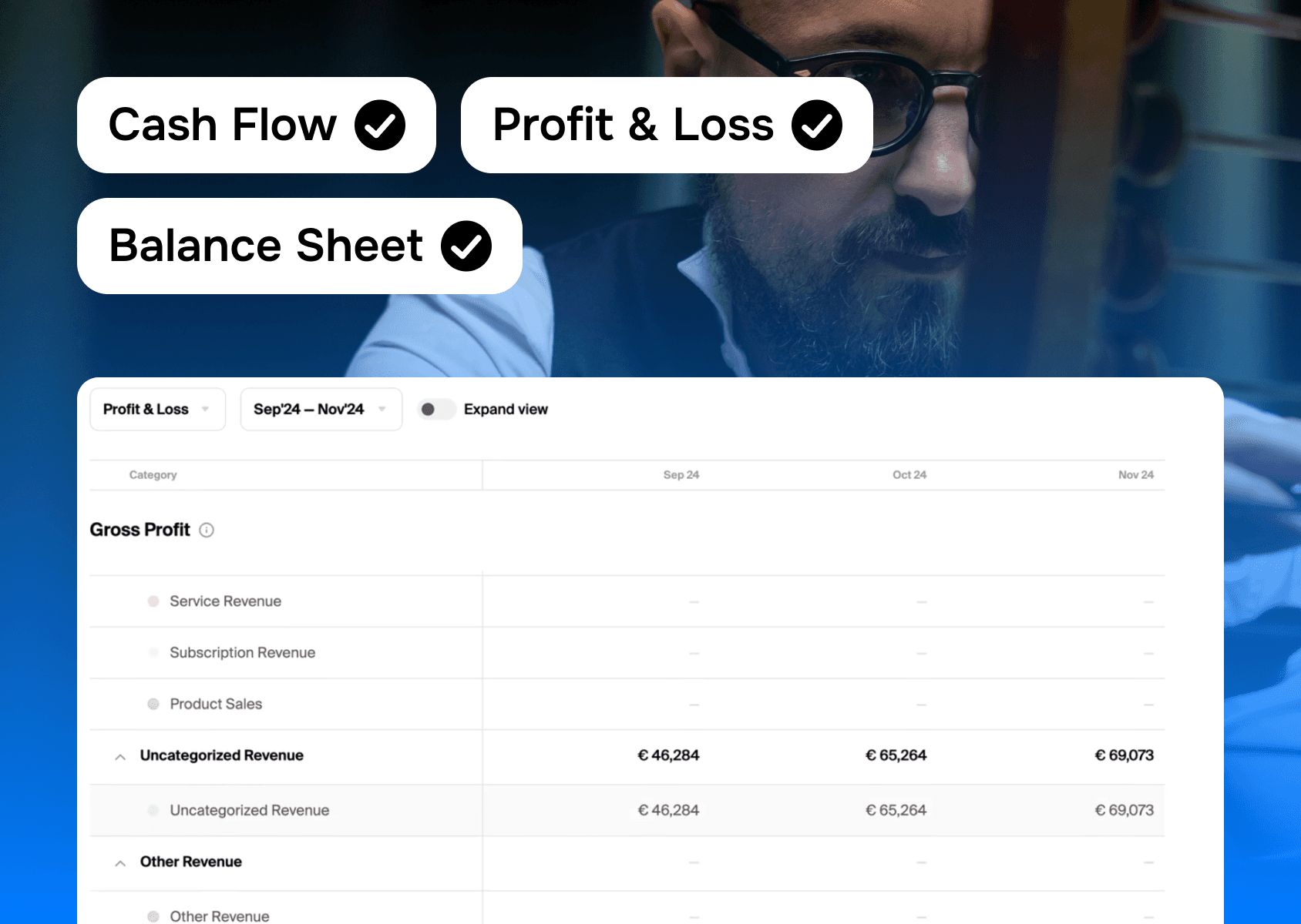 Cu Fintaxy, nu mai aștepți. P&L-ul, bilanțul și cash flow-ul se actualizează automat. Datele sunt actualizate în timp real, corecte, fără să mai aștepți închiderea lunii și fără stres.